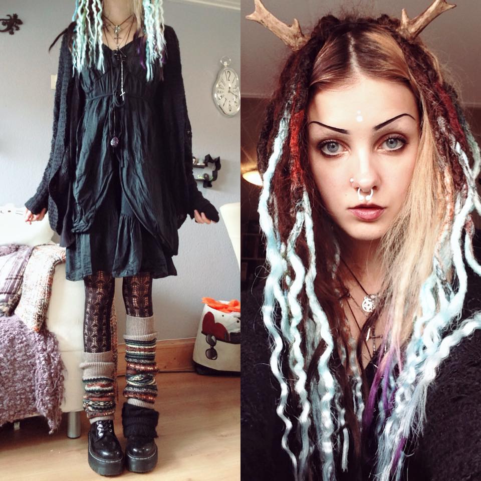 M: Hmm, da’s moeilijk… Een beetje heks-achtig, denk ik. Tegenwoordig dan. Voorheen noemde ik mezelf een alien goth, toen droeg ik meer gekleurde dingen. Nu ben ik meer heks-achtig, met allemaal flowy items.