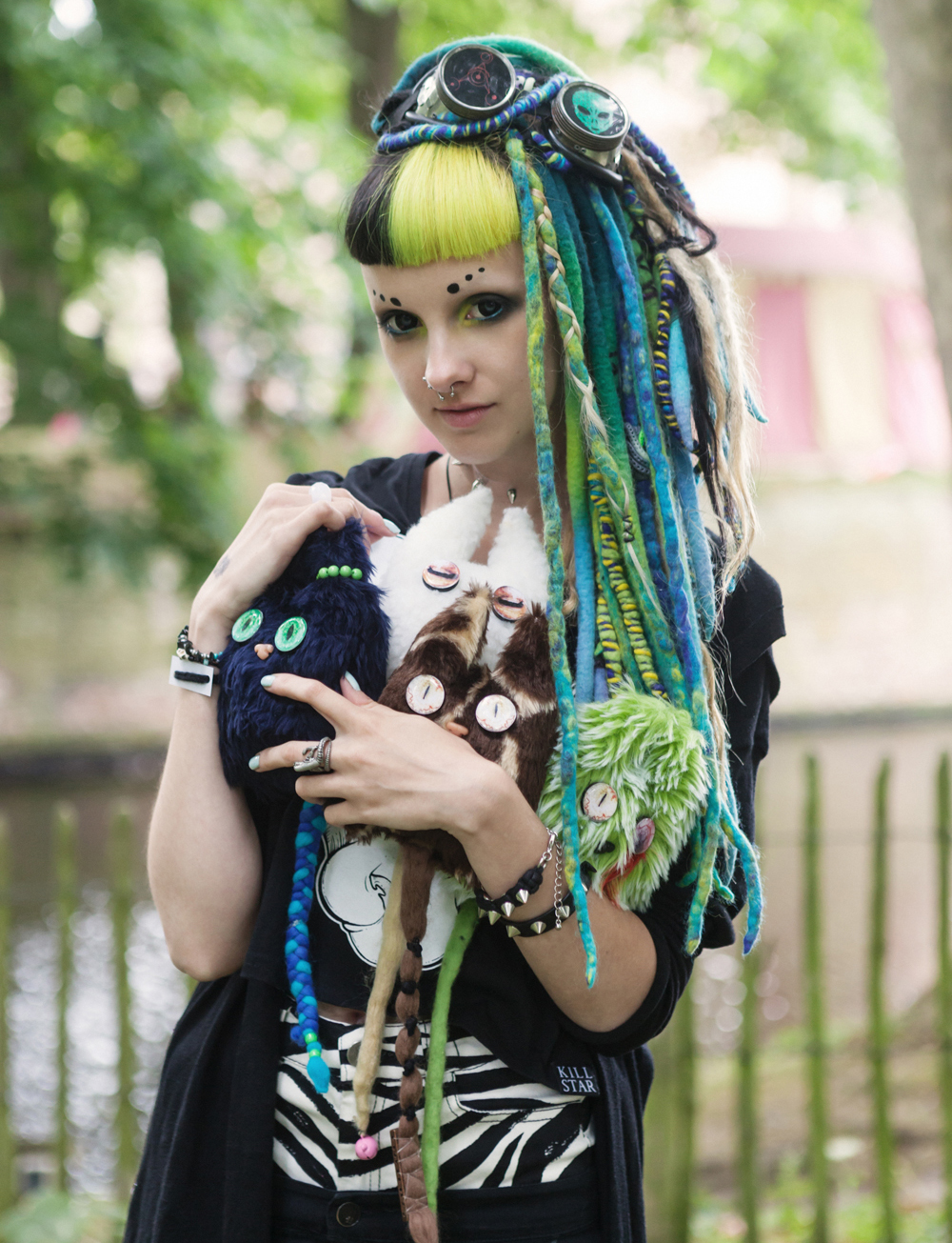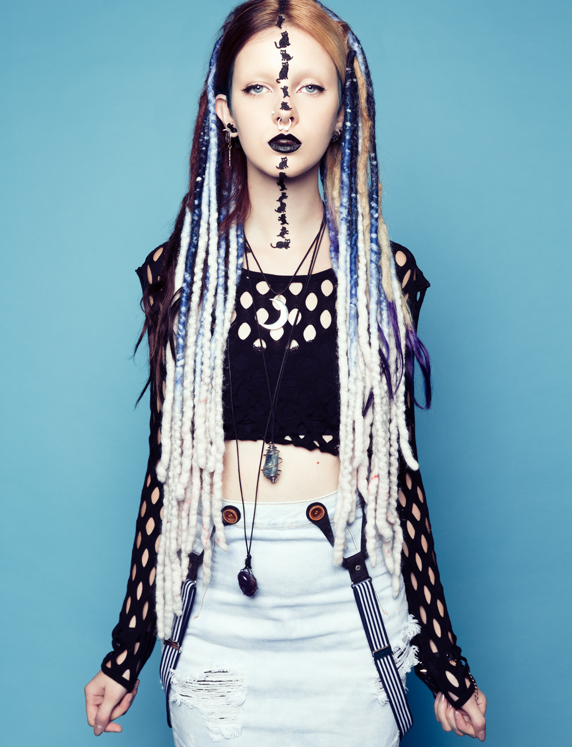 Toen ik een tijdje terug voor Girlz een reportage maakte op het Miss en Mister Alternative-festival, ontmoette ik Mara. Haar zus Lisa had ik toevallig al eerder ontmoet in Tokio, waar ze als model werkte. Terwijl Lisa verdient aan haar commerciële looks, valt Mara, online beter bekend als Psychara, op omdat ze juist het tegenovergestelde is: duister, bijna hekserig.