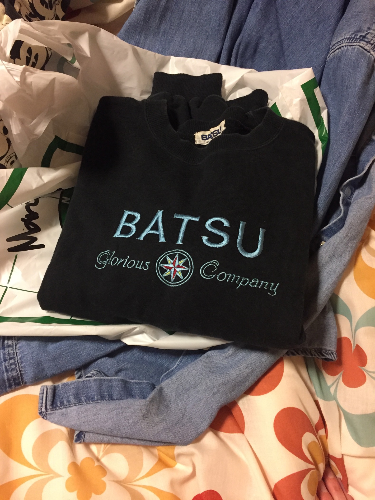 Oh ja enne, ik shopte Maans nieuwe lievelingstrui. Batsu Glorious Company.