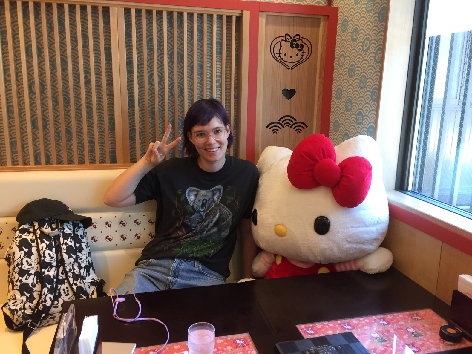 Ik wandelde op het eiland Enoshima, vond een Hello Kitty-restaurant en kon de verleiding niet weerstaan.