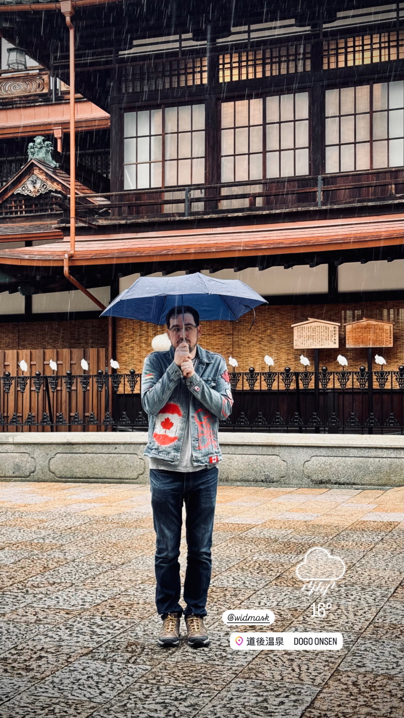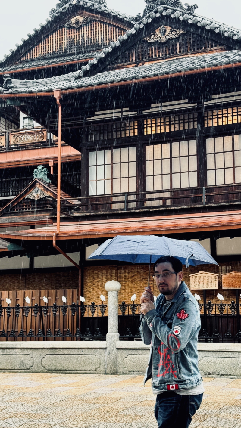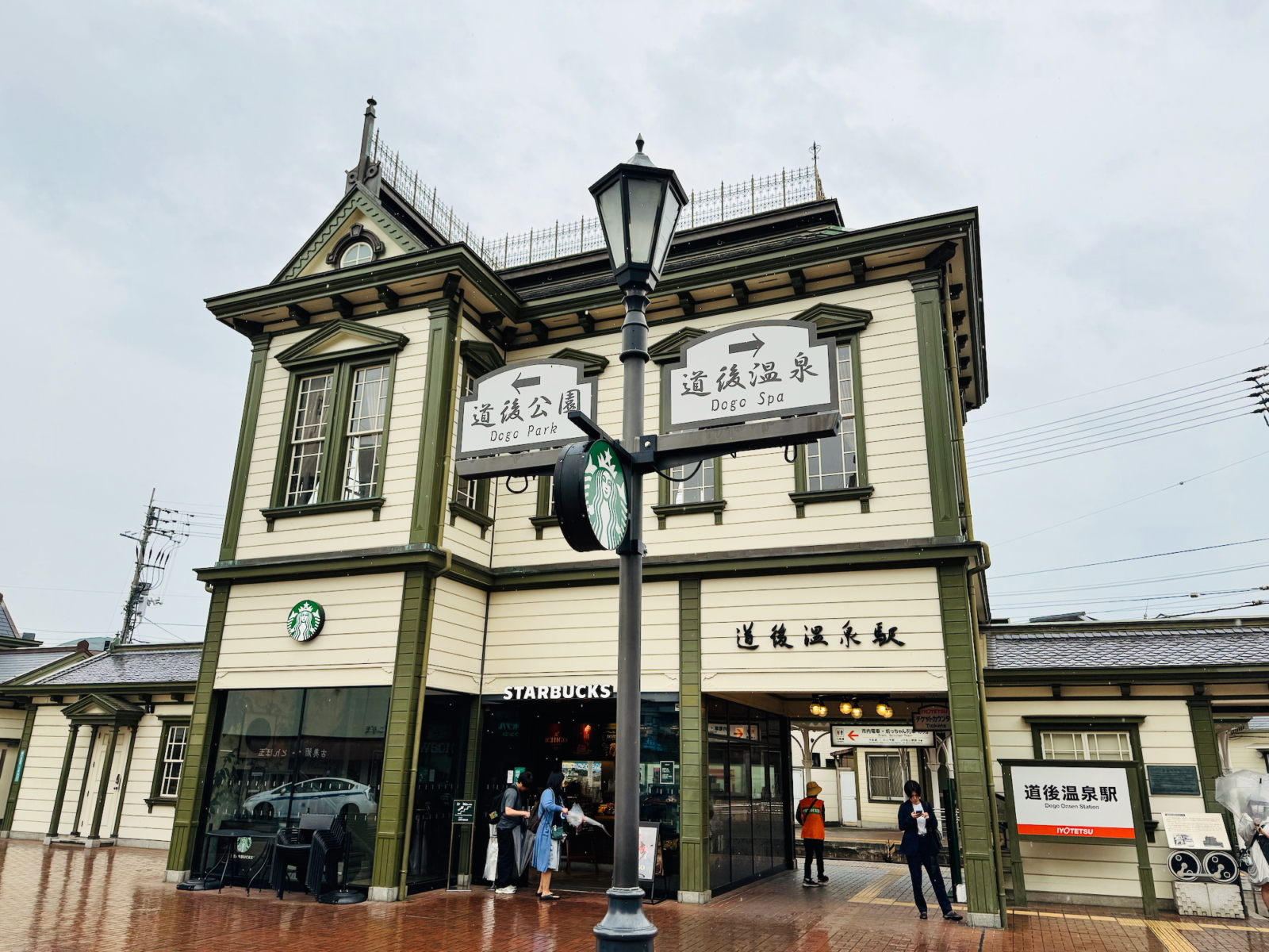 We’d return to Takamatsu later, but after an early chai latte for our first Starbucks medallion, we took the train straight to the second one: in Ehime, in the charming town of Dōgo Onsen—a place known for its natural hot springs, where many pilgrims enjoy a healing bath. We didn’t go in the bath ourselves, though with all the rain it almost felt like we did.