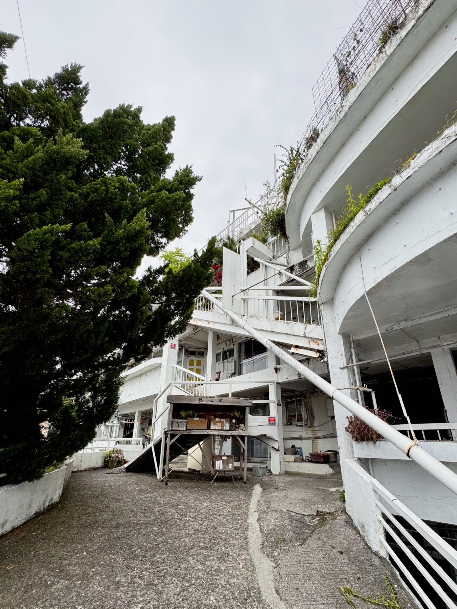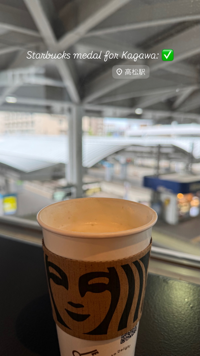 In Kōchi, there was one thing I really wanted to see: the Sawada Mansions. I had once seen a YouTube video about this unique building, which was built illegally by a wonderfully stubborn couple with a vision—people who thought they could do everything themselves. Apartments in the building are dirt cheap, and all sorts of goods are sold and classes are held there. On the roof, there’s a small farm, and at the entrance, a few boxes sell vegetables on a trust basis: “Put the money in this box,” a handwritten note says. Whether the building is actually safe is another question, so we didn’t dare go all the way to the top. But we did visit the nearby Starbucks, for medallion number 3: the one from Kōchi. (Kōchi is the name of both the prefecture and the city.)