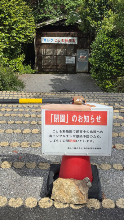 We decided to walk up to it and take a closer look at the structure. The rust gave away a lot, as did the abandoned station of what must once have been a cable car. Down in the water, we could still see the concrete foundations of what used to be the support towers. Up on the mountain, the towers were still there—but without cables, chairs, or any kind of cabins. I don’t know when the cable car stopped running, but it turned out the observation tower had been closed since 2019. A little further on, we spotted a small zoo that, according to a note on the barrier, was closed due to bird flu. They haven’t had much luck, over there in Ainan.