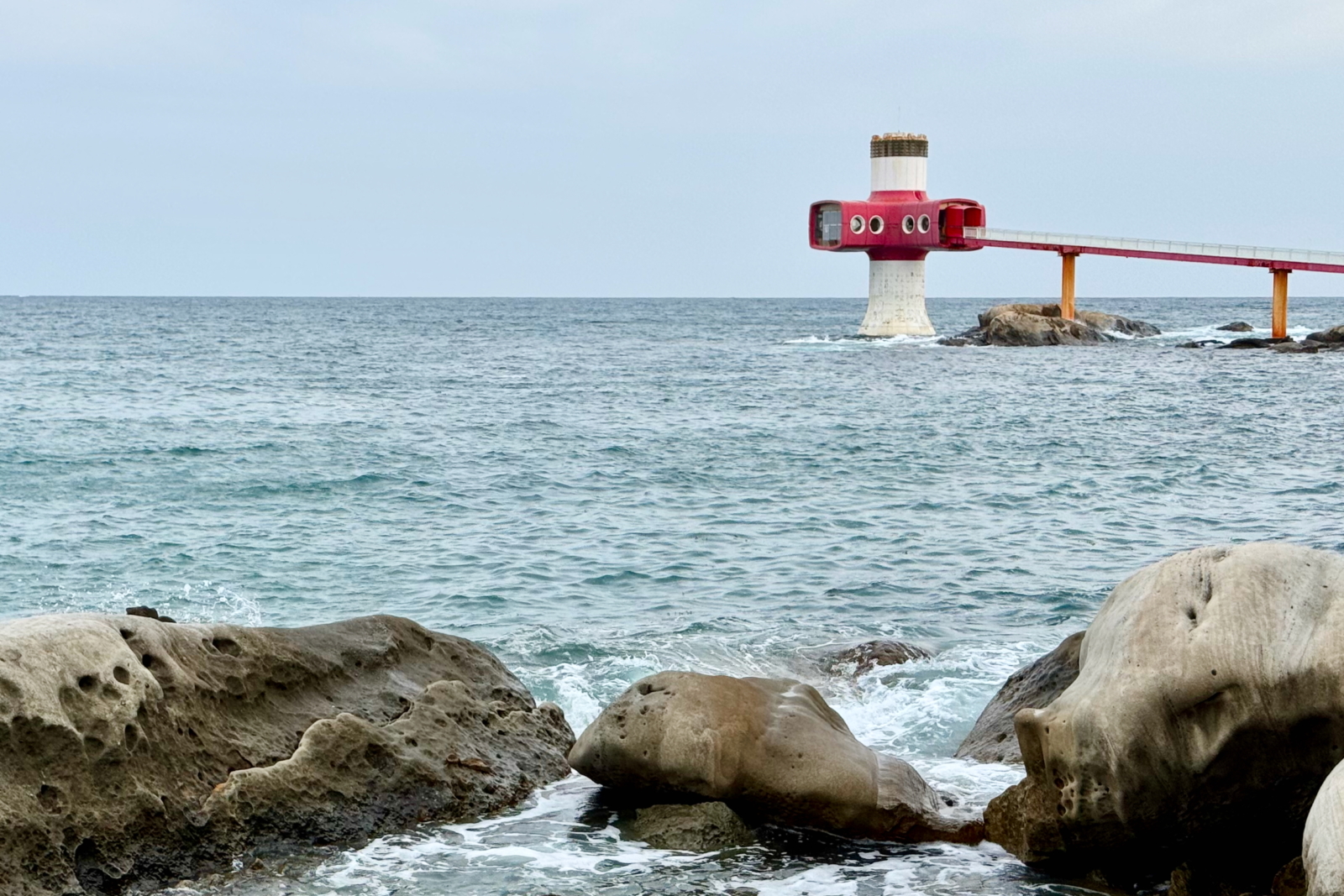 We picked up the rental car and hit the road. I had spotted something interesting on the map: a Japanese WWII fighter plane that had been fished out of the sea, restored, and placed in a small museum on top of a mountain. That mountain, in Ainan, used to be a tourist attraction. Just a few minutes’ walk from the museum stood a tall observation tower that Google Maps didn’t mention. It wasn’t moving either. “Must be closed?”