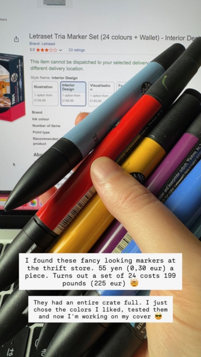 Last week I suddenly had a day where I felt like I had wings. You know, one of those days when you’re inexplicably full of energy – well, actually, I suspect it was just because I was at my office – and you end up ticking off all sorts of tasks. I was at the office, and the day before I’d found a box of fancy-looking felt-tip pens at Off-House. They were 55 yen (about 30 cents) each, so I picked out ten.