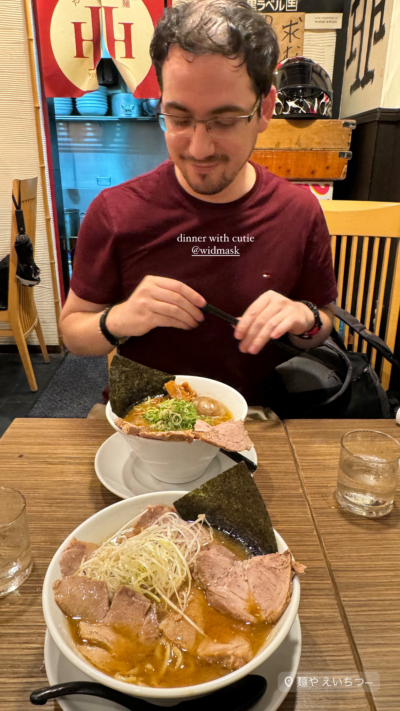 Yesterday, François wanted to go to a ramen restaurant he’d seen on YouTube. It was an hour away from us, with four different trains and a route through the center of Tokyo. I wasn’t really excited about the idea initially, but I knew there was a second-hand clothing store nearby. A store I used to happily travel across half the city for. When I first went to the store about four years ago, I walked for forty minutes afterward to a park where you can see Tokyo Disneyland in the distance. “Maybe we can do that too!” I suggested, quickly followed by a less enthusiastic, “But yeah, it is 36 degrees…”