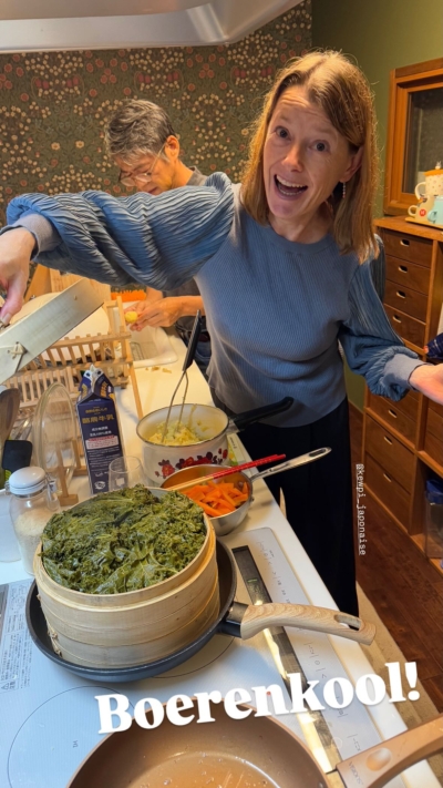Yvonne’s boyfriend’s house is a traditional Japanese home, with a little shed in the garden (or should I say: tiny house) that’s been converted into a guest room. Super cute! I stayed there for two days. We went to the local bathhouse and the small beach-with-a-Starbucks across from Kansai Airport, and on the first evening Yvonne and her boyfriend cooked a very traditional dish… Dutch stamppot!