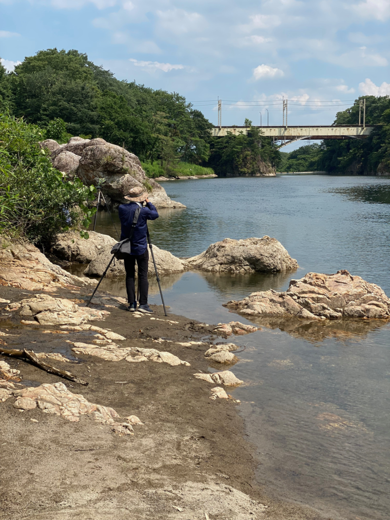 We were not the only ones at the spotting location. Several Japanese were already waiting with tripods and telephoto lenses. And just as the railroad crossing began to ring and we heard the choo-choos in the distance, the father of the little family next to us called out, “Damn, overheated!” My phone continued to work, thankfully.