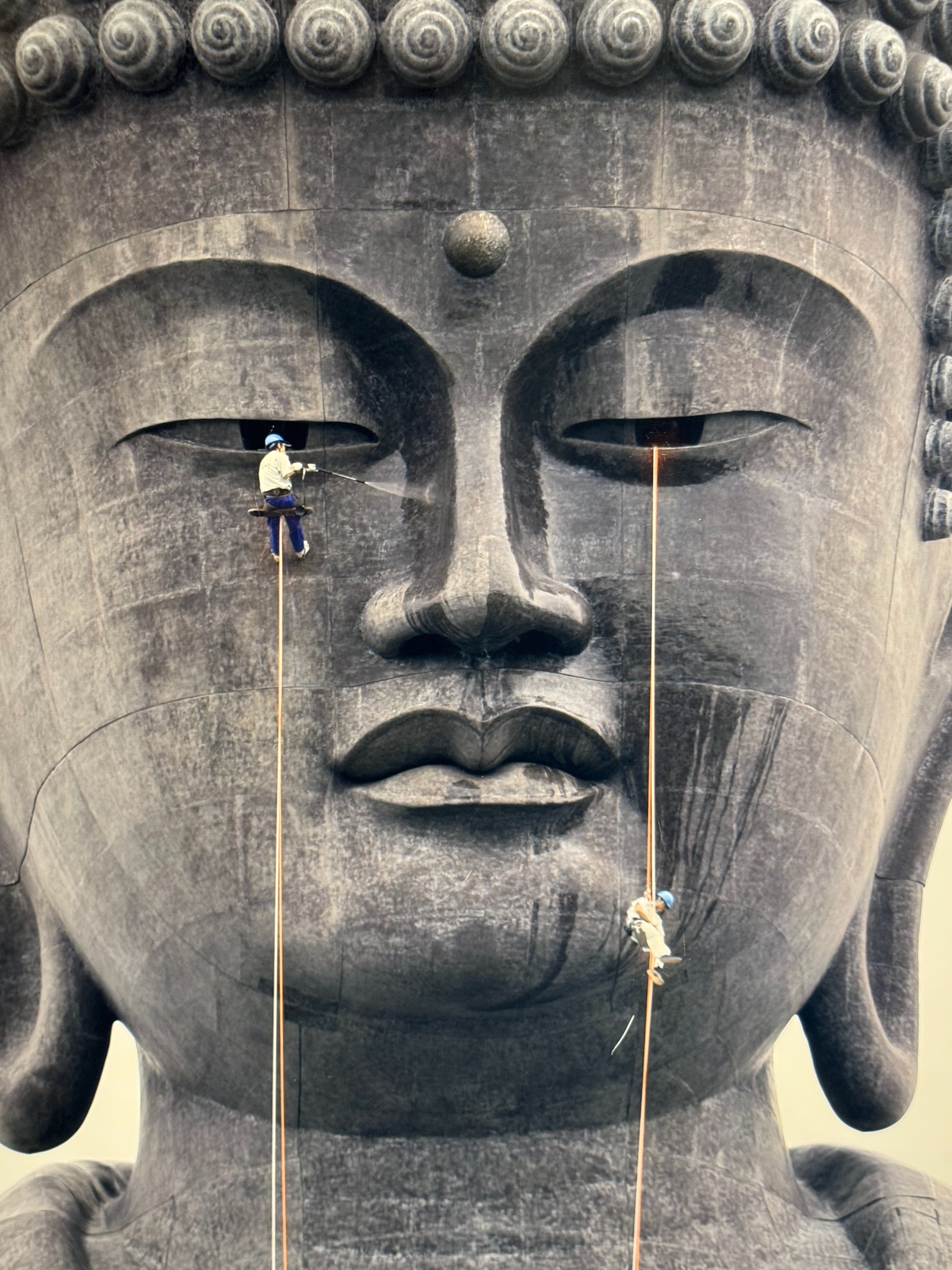 Iemand reageerde: “Daar moet je echt naartoe! Je kan zelfs ín de Boeddha!” Dat wekte enigszins mijn interesse, dus de volgende ochtend besloten we het advies van deze commenter op te volgen, en Boeddha van de binnenkant te gaan bekijken. (Maar niet voordat we even stopten bij Starbucks, en de Book-Off die we toevallig tegenkwamen.)