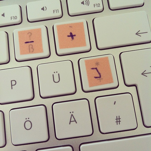 Waarschuwing. Als je ooit gaat shoppen in CentrO, Oberhausen, koop dan geen toetsenbord. Ik had er geen seconde over nagedacht, maar Duitsers hebben natuurlijk een heel andere indeling, met ß en Ö en zo. Ik plakte wat tape, maar ideaal is het nog steeds niet.