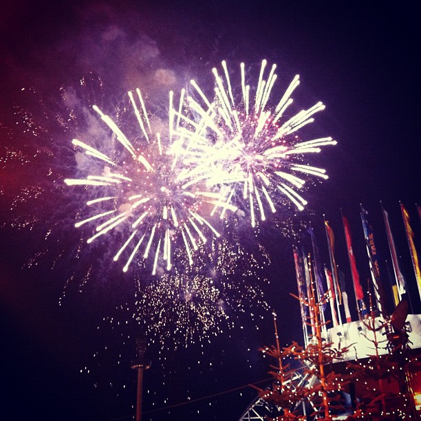 2013 begon in Europapark. We hadden geen kaartjes voor die avond, omdat we niet wisten dat dat moest, maar van buiten het park kon je het vuurwerk ook prima zien. Met een zelf meegebrachte fles champagne luidden we het nieuwe jaar in.
