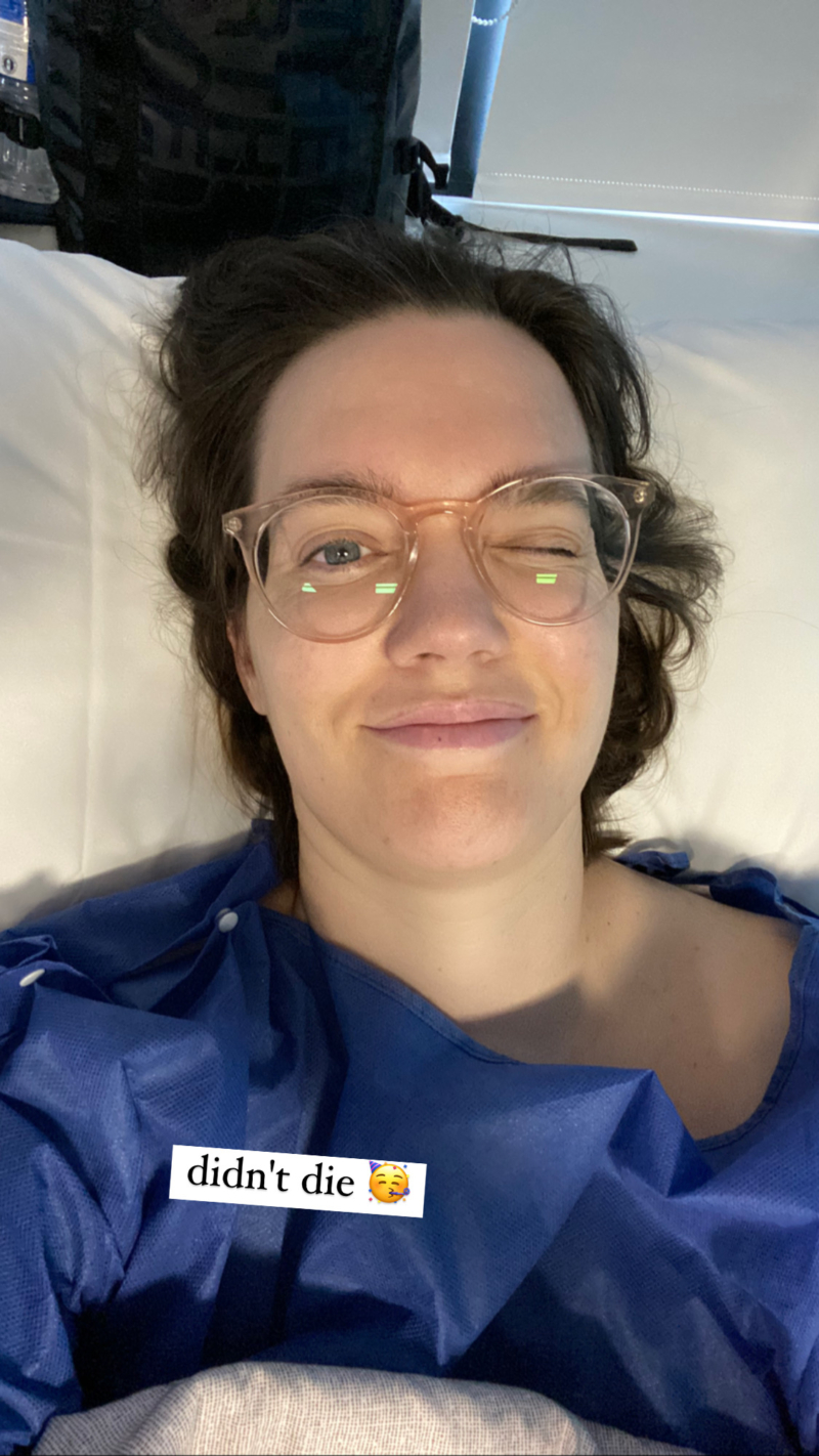 Ik appte Riemer, die ondertussen trouwens ook al op de hoogte werd gehouden door het app-systeem van de kliniek, dat hij kon gaan rijden. Ik vroeg de verpleegster om mijn airpods uit mijn tas te pakken (“in de klep, in het roze hoesje” – oh, wat hou ik van mijn georganiseerdheid op zulke momenten) zodat ik muziek kon luisteren, en even later was daar ook de dokter. “Alles is goed gegaan. We vonden ook wat endometriose op je eierstokken en darmen, dus dat hebben we ook meteen eventjes weggehaald.”