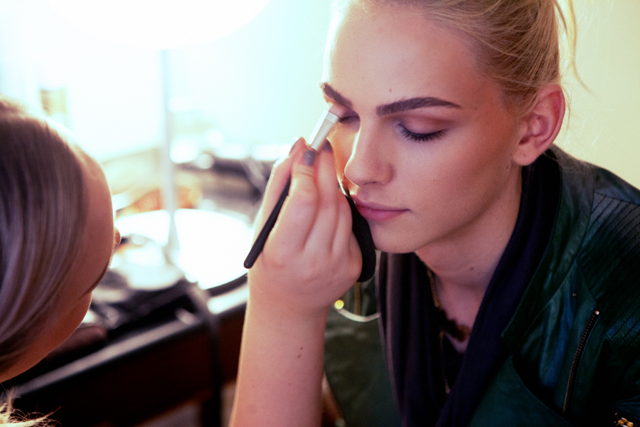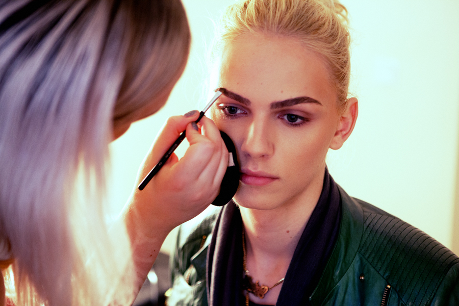 Nikkie begon met opmaken, en ik maakte backstage-pics. We waren gezellig aan het praten, over Nederland, muziek, de modellenbizz en welke crèmes en make-up goed waren voor je huid. Al kon ik over dat laatste niet echt meepraten, hihi. Nikkie gaf Andrej tips en advies, terwijl ze hem voorzag van precies dezelfde make-up als die zij zelf ophad. “I want what you have”, zei onze ster namelijk. Hij kon Nikkie geen groter compliment geven.