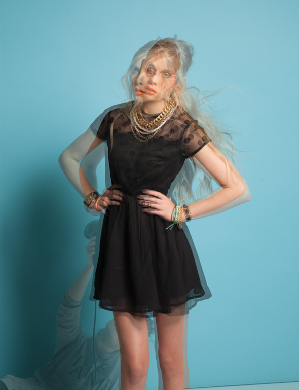 Een aantal weken geleden deed ik een testshoot met Larissa. Op een bepaalde foto wilden we wind in haar haren, maar de föhn die we daarvoor gebruikten was niet sterk genoeg. Resultaat: een foto met de visagiste op de grond. “Geeft niet, dat shop ik wel weg!”, zo zei ik op de shoot. Ik zorgde dat ik een soortgelijke foto maakte zónder visagiste (en dus ook met saai haar) en ging aan het knutselen.