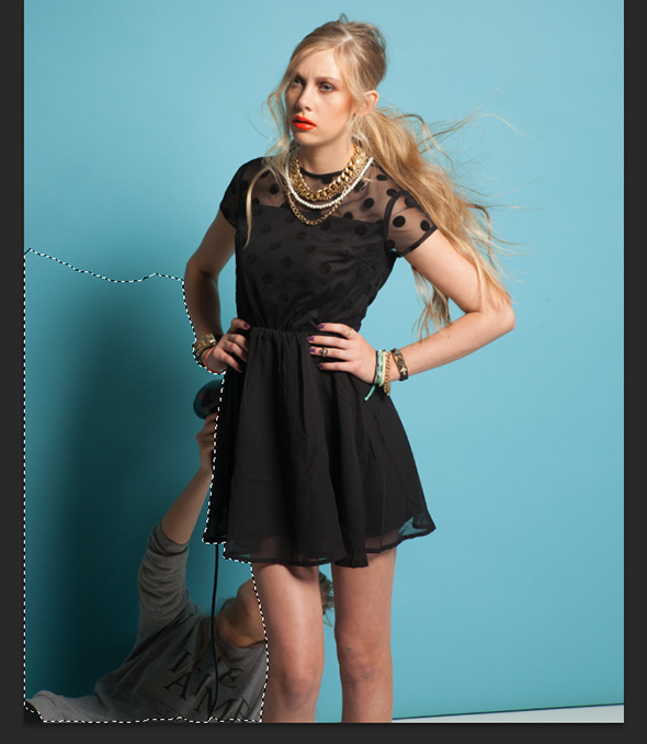 Zoals je ziet, steekt er nog wat haar uit tussen de benen van het model. (Dit klinkt heel fout, ehm…) Om het mezelf makkelijk te maken, pakte ik een nieuw exemplaar van de extra foto, en schoof ik die op precies de juiste plek.