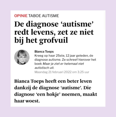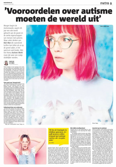 Samen met Zjos Dekker werd ik geïnterviewd voor Metro. We spraken over autisme op de werkvloer, en de vooroordelen die nog altijd over autisme heersen.