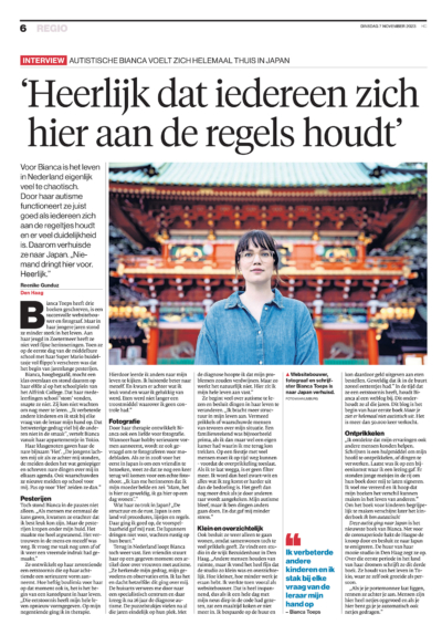 Voor Bianca is het leven in Nederland eigenlijk veel te chaotisch. Door haar autisme functioneert ze juist goed als iedereen zich aan de regeltjes houdt en er veel duidelijkheid is. Daarom verhuisde ze naar Japan. “Niemand dringt hier voor. Heerlijk.”