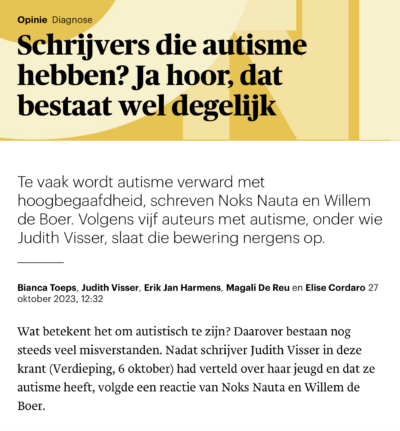Samen met vier andere autistische auteurs schreef ik een reactie op een opiniestuk dat de autismediagnose van schrijfster Judith Visser in twijfel trok – zonder dat de afzenders haar ooit ontmoet hadden.
