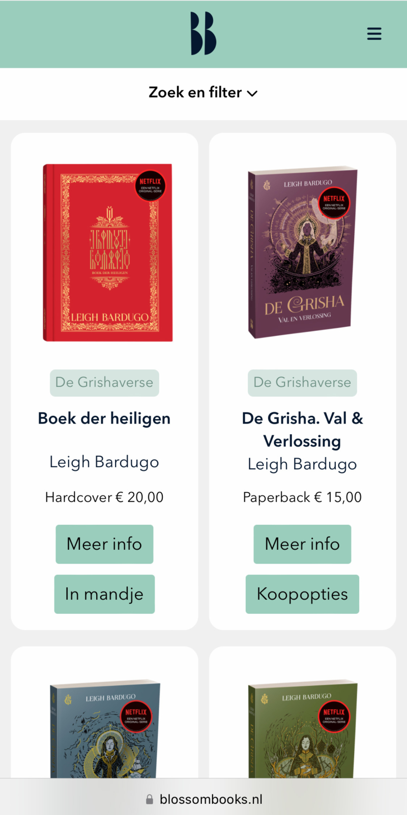 Ik bouwde de website zo dat de dames achter Blossom Books elk boek maar één keer hoeven in te voeren, zodat zij zich kunnen richten op waar ze goed in zijn: boeken uitgeven!